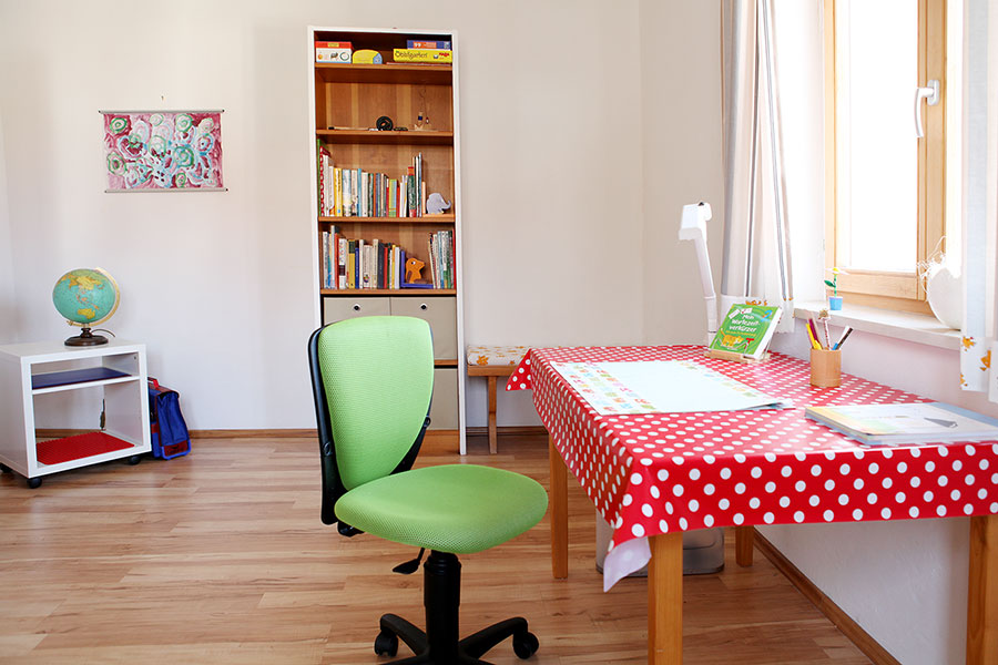 - Kinderspielzimmer mit Schreibtisch, Kinderhochstuhl