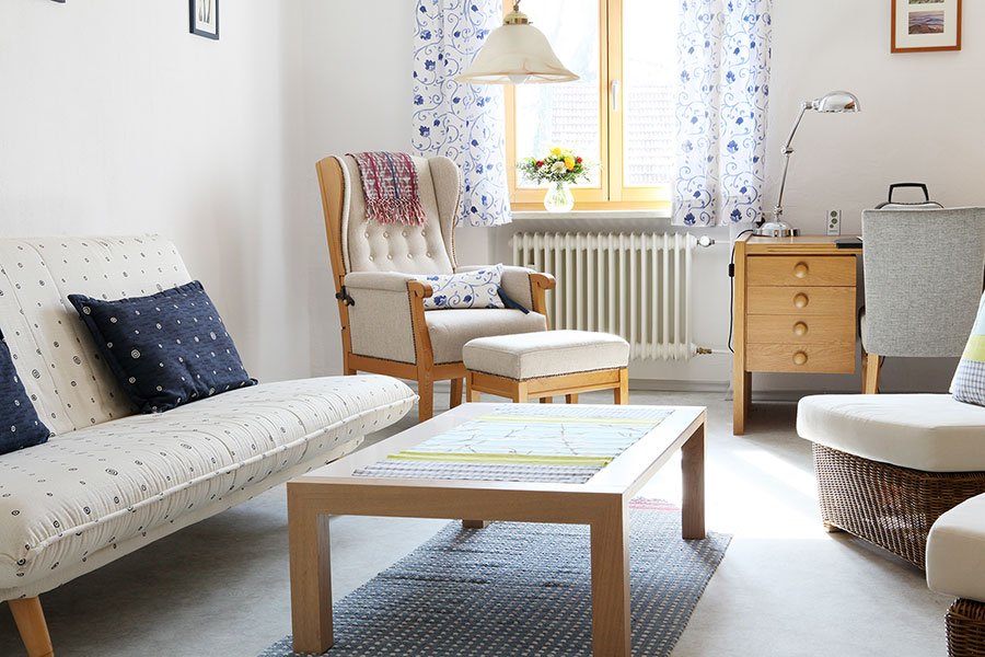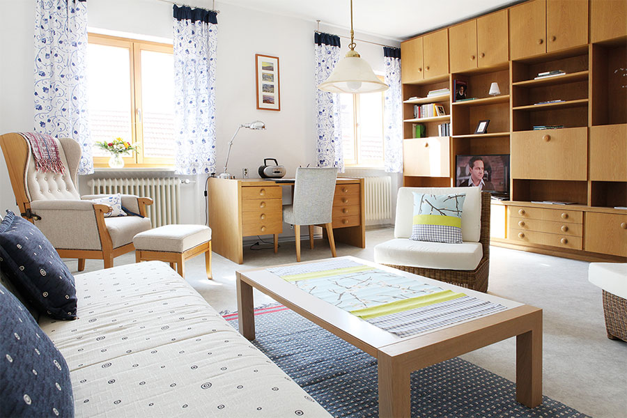 - Wohnzimmer mit Flachbild-Sat-TV, CD-Radio, WLAN